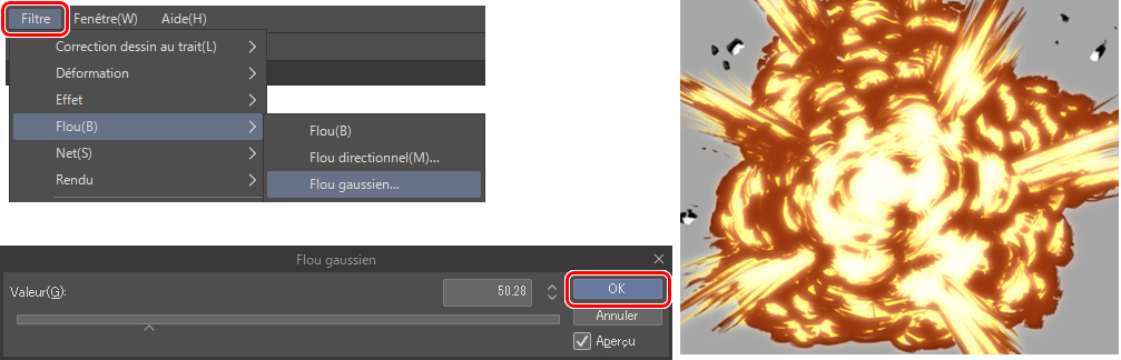 Passez aux étapes 4 (couleur) et 5 (flou), avec la deuxième explosion.