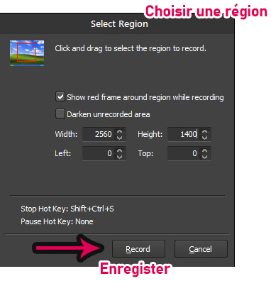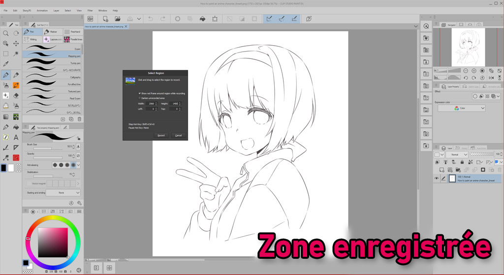Sélectionnez la zone que vous souhaitez enregistrer, qui est la fenêtre CLIP STUDIO PAINT dans notre exemple de tutoriel, et cliquez sur le bouton d’enregistrement pour commencer l’enregistrement.