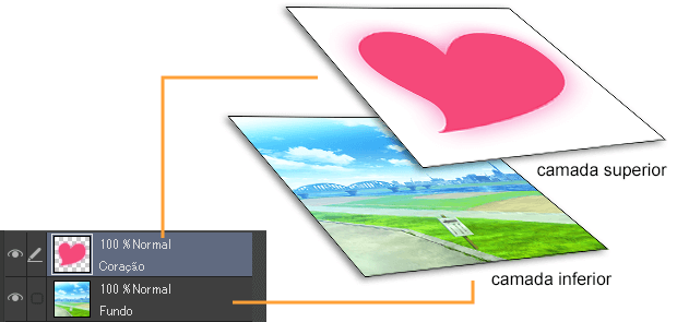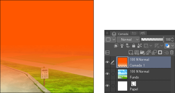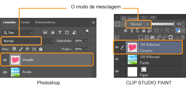 Estes exemplos foram criados no Clip Studio Paint. Embora, os efeitos e nomes dos modos de mesclagem possam ser parecidos em diferentes softwares, é possível que você note diferenças.