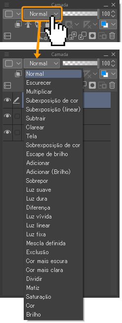 À direita, você pode ver onde os modos de combinação para camadas ficam localizados no meu software. O modo padrão é o “Normal”. Aqui você pode brincar um pouco para descobrir com qual modo você se sente mais confortável.