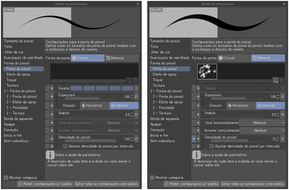 Eu sugiro conferir em alguns desenhos como funcionam as configurações padrões dessas ferramentas antes de começar a personalizá-las. Às vezes saber como uma ferramenta se comporta ajuda a descobrir o que realmente gostaríamos de mudar nela.