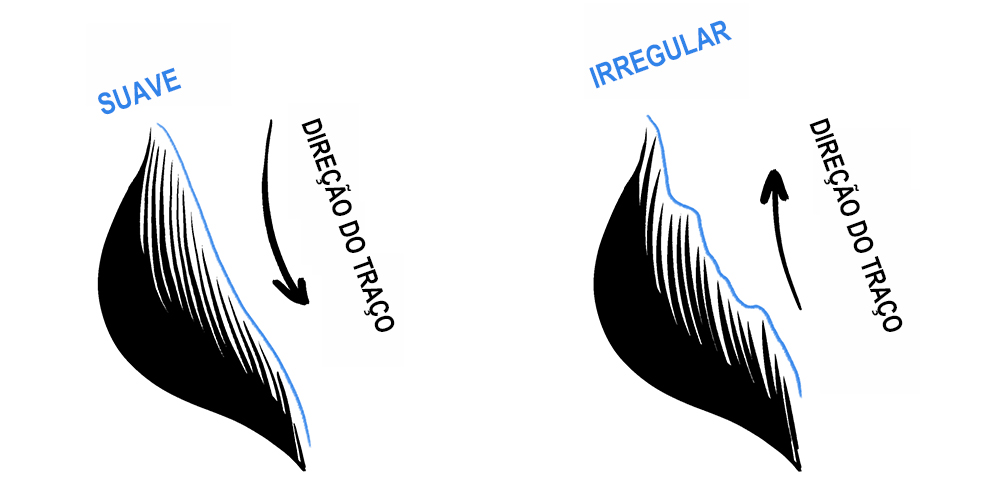 Em vez disso, experimente começar no ponto mais fino e então voltar para a área sombreada. Dessa forma, você pode criar um caimento consistente para suas linhas e elas vão parecer muito mais limpas e profissionais.
