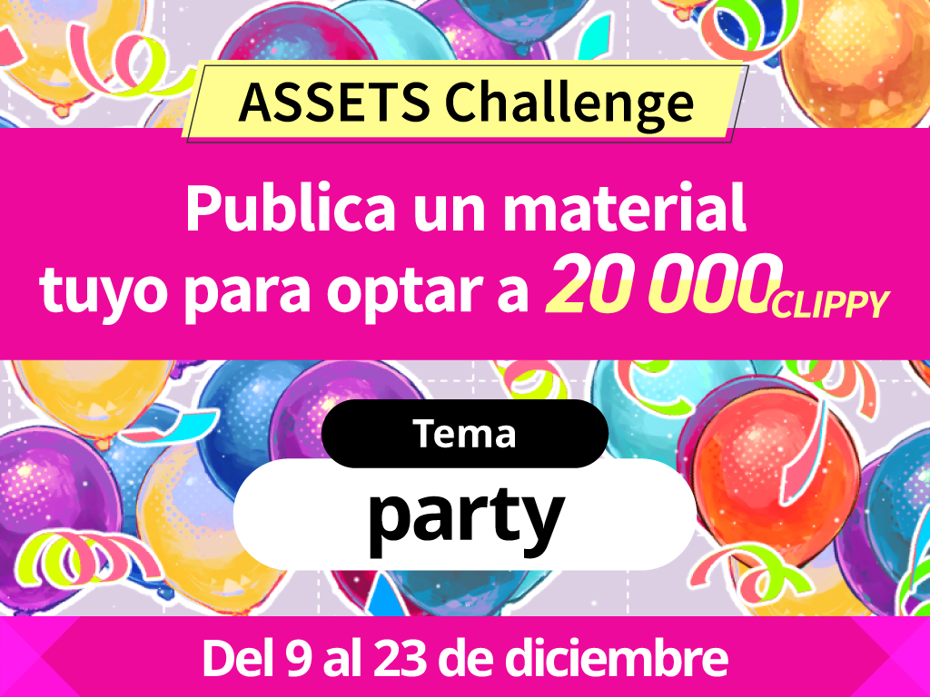 De entre todos los materiales recibidos, seleccionamos un mínimo de 5 cada vez en base a su popularidad, facilidad de uso, originalidad, difusión, etc. ¡Se entregarán 20 000 tickets Clippy a los materiales ganadores! Además, ¡serán presentados en las redes sociales oficiales de Celsys!