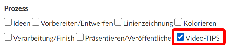 - Wenn du einen TIPS-Artikel mit Video einreichen möchtest, wähle bitte unter Kategorie > Prozess die Option „Video-TIPS“.