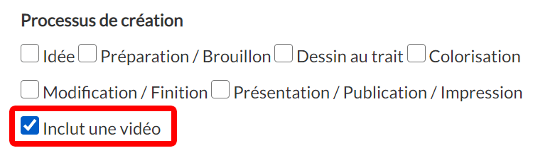 - Lorsque vous publiez un article, veuillez cocher [Inclut une vidéo] dans [Catégorie] → [Processus de création].