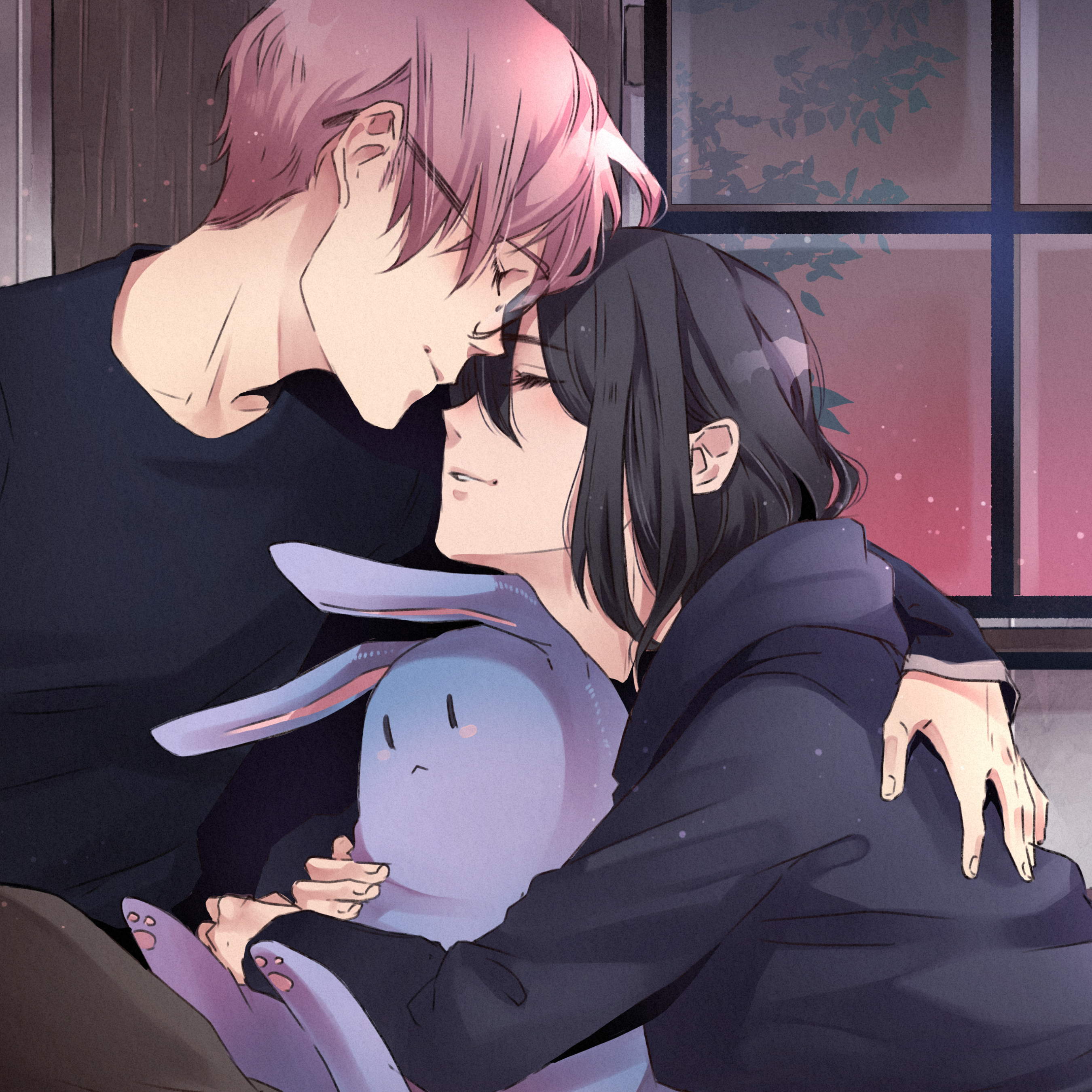 Eine Lichtquelle auf der linken Seite wird durch die Hervorhebungen angezeigt, die den Charakteren hinzugefügt wurden. Dies könnte darauf hinweisen, dass sich ein Fenster oder eine Lampe außerhalb des Bildes befindet und mehr Kontext für die Szene liefert.
