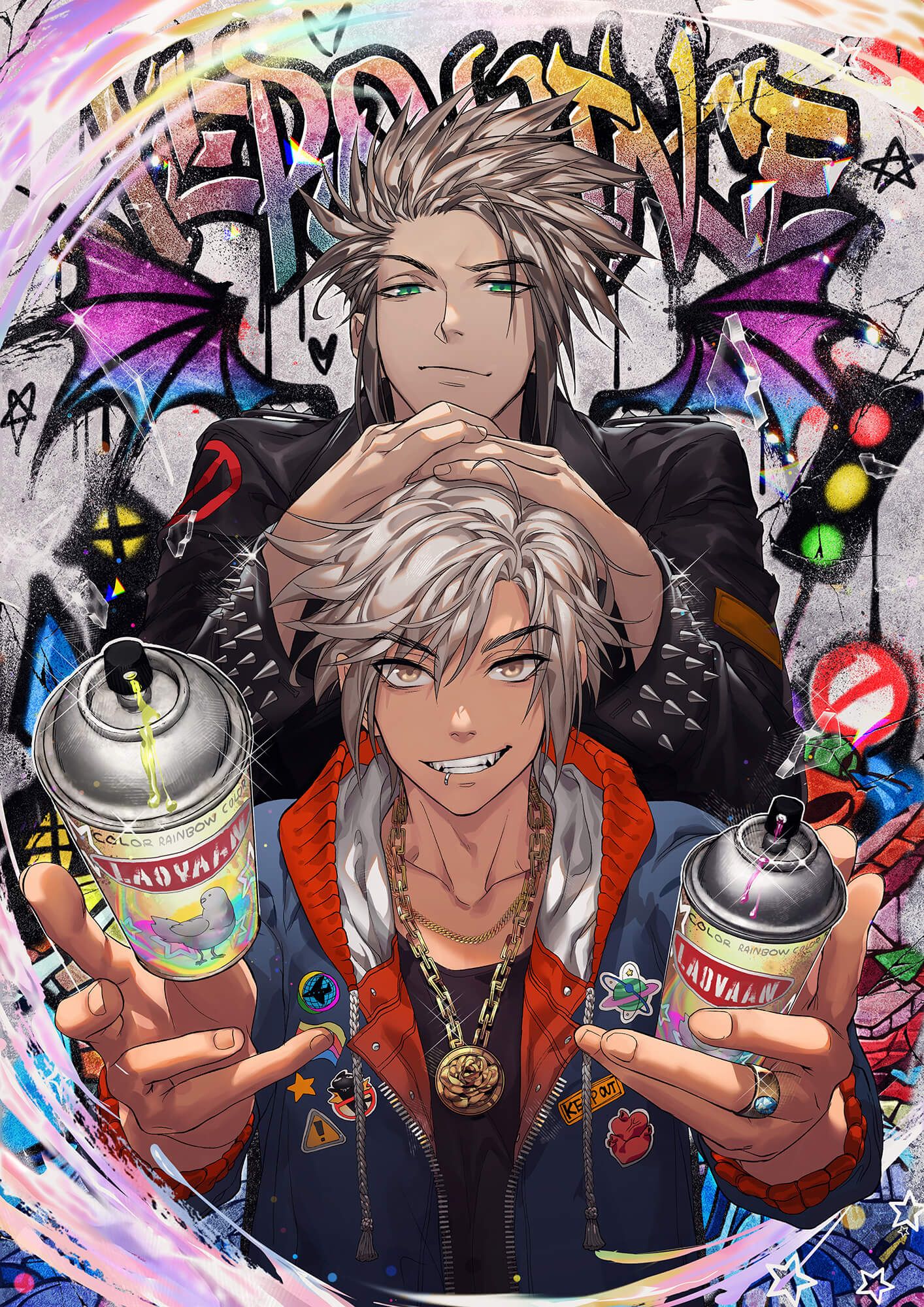In den folgenden Beispielen wurden verschiedenen Texturbilder zum Haar des Charakters, zur Kleidung und zum Hintergrund hinzugefügt. Wenn du Bildmaterialien hinzufügst, achte darauf, sie mit deinen eigenen Zeichnungen zu überblenden, damit es nicht fehl am Platz aussieht. Du kannst sie als Referenz verwenden und in deinem eigenen Stil darüber zeichnen oder bei Bedarf Details löschen und hinzufügen.