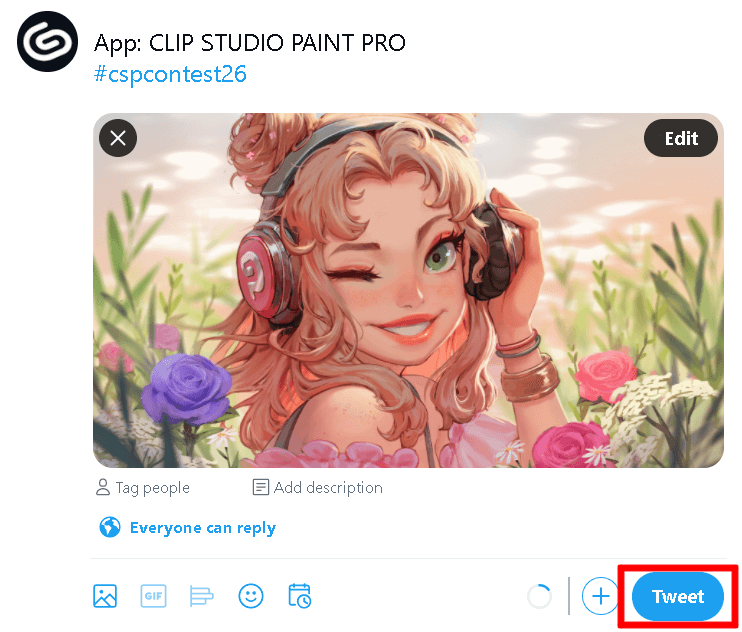 - Die Gewinner werden per Direktnachricht auf Twitter kontaktiert. Stellen Sie daher sicher, dass Sie dem offiziellen CLIP STUDIO-Account (@clipstudiopaint) folgen und dass Ihre Einstellungen den Empfang von Direktnachrichten erlauben.