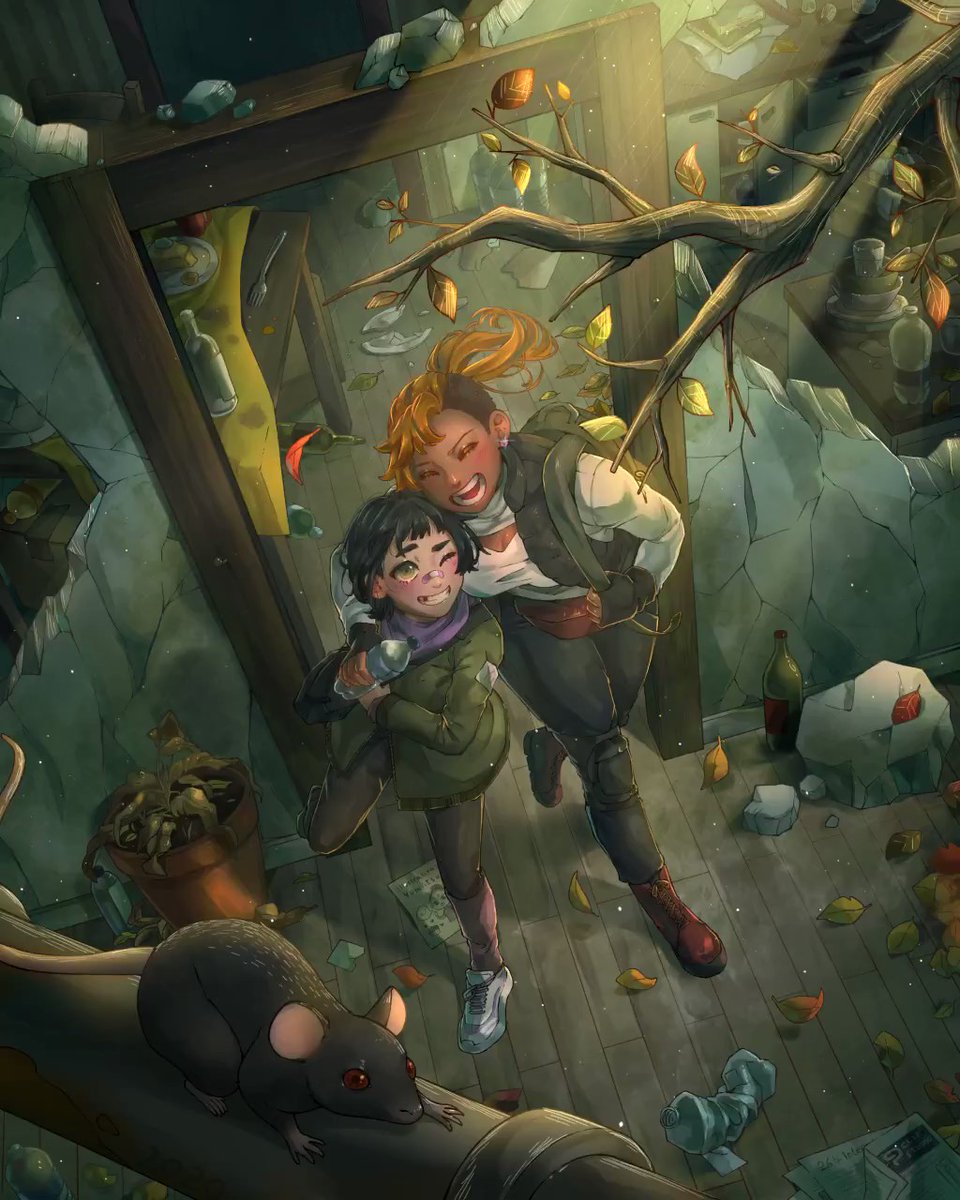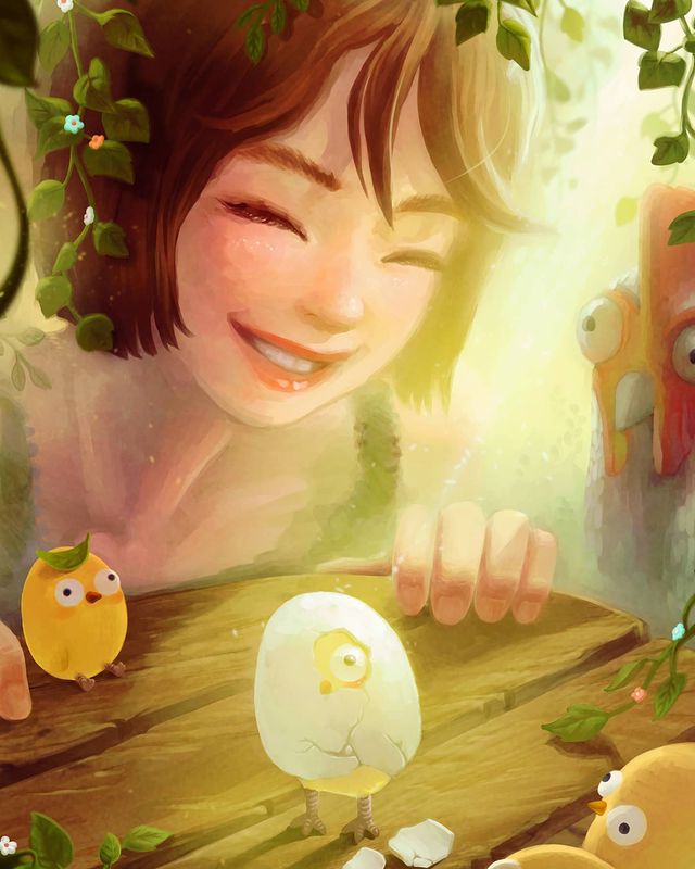 Kommentar: Die Farbwahl ist wunderbar auf das Weltbild abgestimmt und die Charaktere sind sehr niedlich gezeichnet. Die heitere Stimmung des Mädchens wird neben ihrem großartigen Lächeln auch dadurch verstärkt, dass sie gar nicht mitzubekommen scheint, dass sie ihren Schuh verliert.