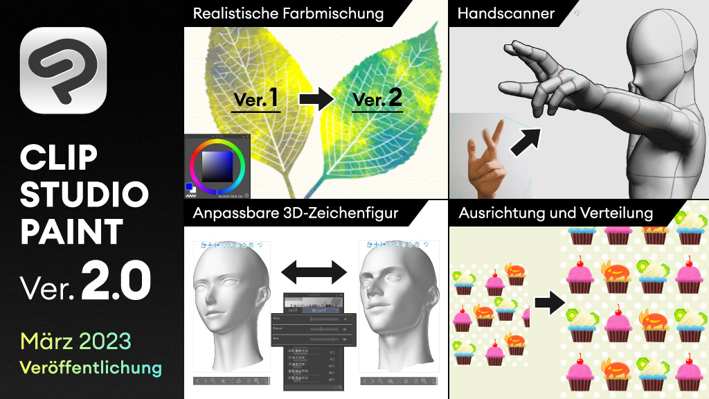 Die Version 2.0 von CLIP STUDIO PAINT, deren Veröffentlichung wir im August angekündigt haben, wird im März 2023 erscheinen. Hier gibt es Einzelheiten zu den neuen Funktionen von Version 2.0, zur Verwendung von Version 2.0, sowie zu den seit der letzten Ankündigung vorgenommenen Änderungen und Ergänzungen.