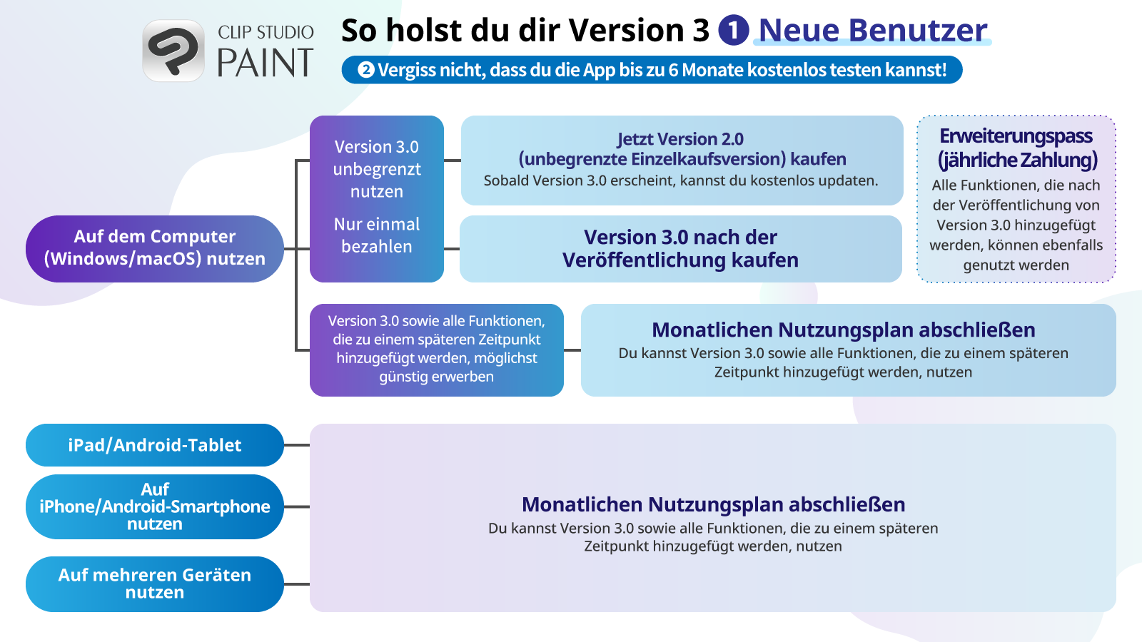 CLIP STUDIO PAINT Ver.3.0 kann auf eine der folgenden Arten erworben werden.