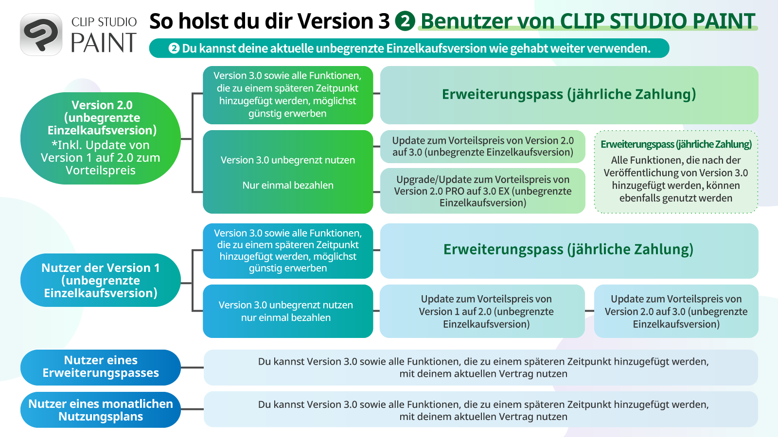 Wie du CLIP STUDIO PAINT 3.0 erwerben kannst, hängt davon ab, welche Version du aktuell benutzt.