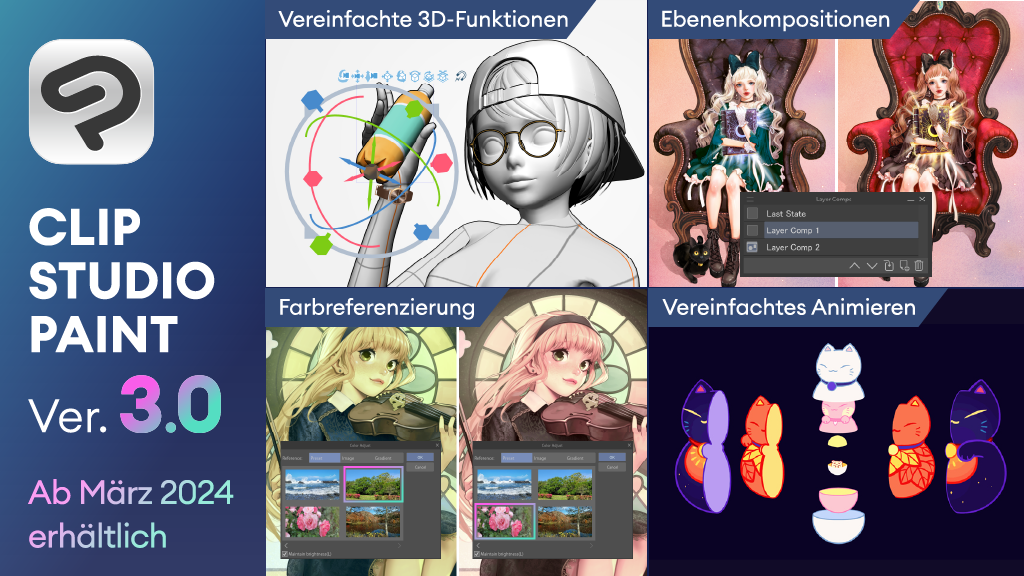 CLIP STUDIO PAINT Version 3.0 wird voraussichtlich im März 2024 erscheinen. (Änderungen vorbehalten)