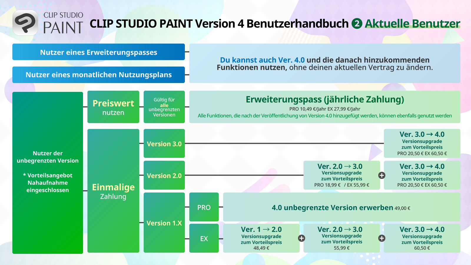 Wie du CLIP STUDIO PAINT 4.0 erwerben kannst, hängt davon ab, welche Version du aktuell benutzt.