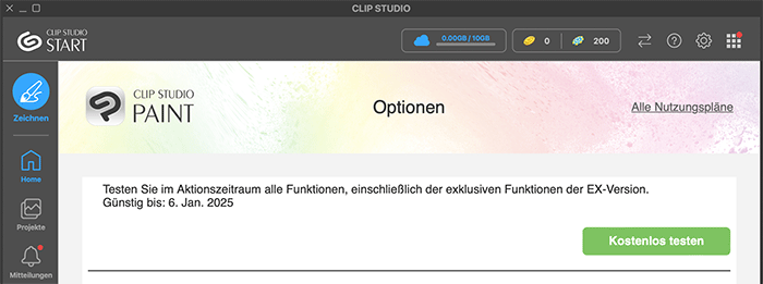 Mit dieser Aktion können alle neuesten Funktionen von CLIP STUDIO PAINT ausprobiert werden.