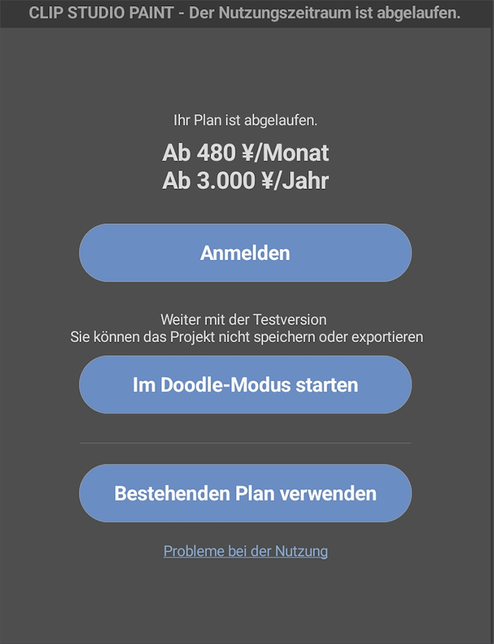 - Nutzer eines monatlichen/ jährlichen Nutzungsplans von CLIP STUDIO PAINT PRO