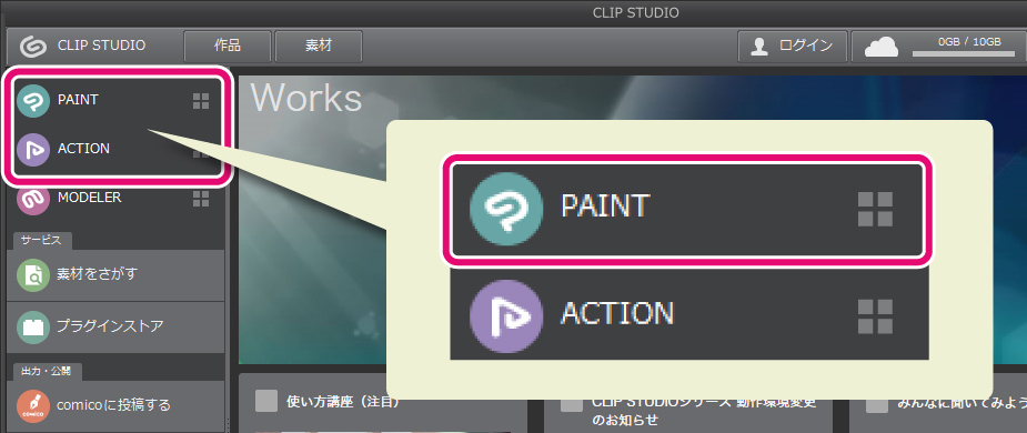 CLIP STUDIOが起動します。「PAINT」をクリックしてCLIP STUDIO PAINTを起動します。