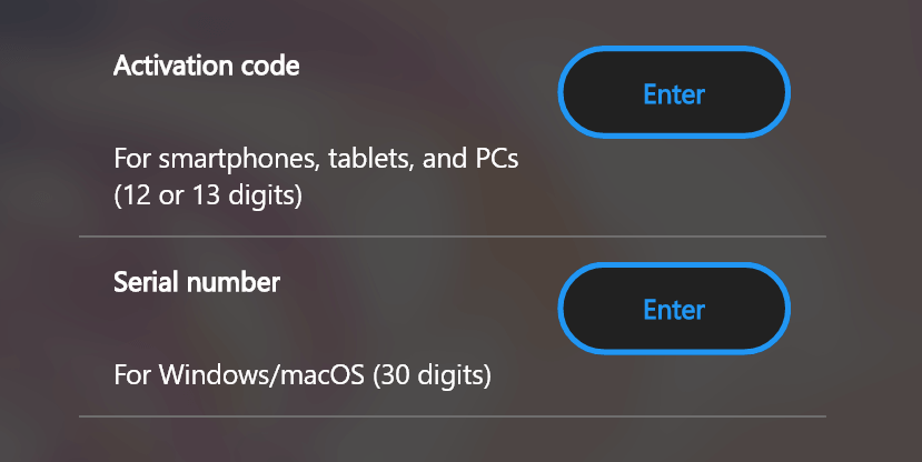 ・Activation code: 12 or 13 characters