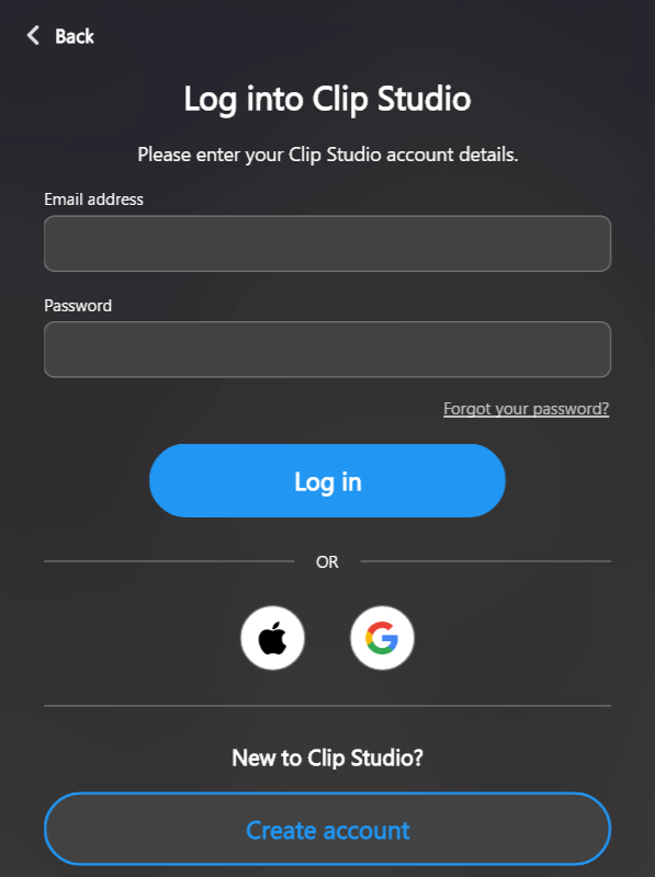 5. Log in with your Clip Studio account.