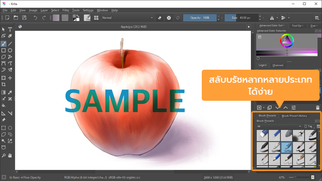 Krita เป็นโปรแกรมวาดภาพดิจิทัลโอเพนซอร์สฟรีที่เต็มไปด้วยเครื่องมือวาดภาพที่จำเป็นและบรัชที่หลากหลาย