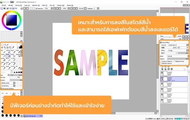 Paint Tool SAI เป็นซอฟต์แวร์เบาเครื่องที่มีอินเทอร์เฟซเรียบง่ายและเอนจิ้นบรัชที่ลื่นไหล ทำให้เหมาะสำหรับการวาดภาพ อย่างไรก็ตาม แอปนี้ขาดฟีเจอร์บางอย่าง เช่น การป้อนข้อความ การไล่โทนสี และหุ่น 3D จึงไม่เหมาะสำหรับการวาดคอมมิก/มังงะและเว็บตูน