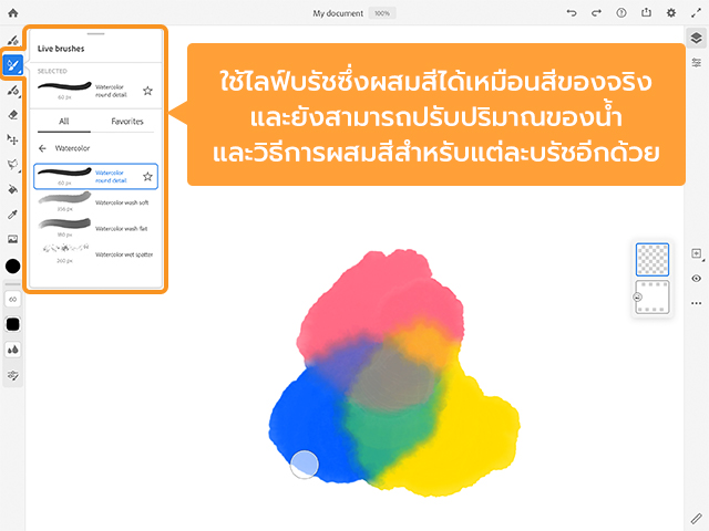 เวอร์ชัน iPad มีฟอนต์มากกว่า 18,000 แบบและพาเล็ตสีมากกว่า 20 แบบ สมัครสมาชิก Adobe Creative Cloud เพื่อใช้ไฟล์ร่วมกับ Photoshop, Fresco และ Adobe Illustrator เวอร์ชัน PC ได้