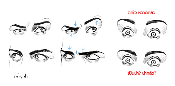 รูปทรงของตาจะเปลี่ยนไปเมื่อรูม่านตาขยับ อย่ากลัวที่จะวาดรูปทรงของดวงตาให้ดูมีความเคลื่อนไหว