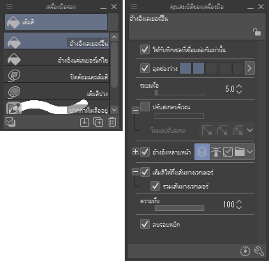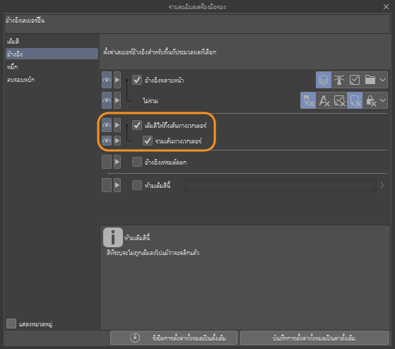 และจะใช้ตัวเลือกอ้างอิงแค่เลเยอร์แก้ไข (Refer only to editing layer) และอ้างอิงเลเยอร์อื่น (Refer other layers) เป็นหลัก