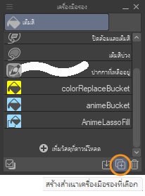 - คลิกสร้างสำเนาเครื่องมือรองที่เลือก (Create copy of currently selected sub tool) (ไอคอนเล็กๆ ที่มีสี่เหลี่ยมสองอันและสัญลักษณ์ + ที่ด้านล่างของเมนูเครื่องมือรอง) จากนั้นจะสามารถสร้างเครื่องมือใหม่ได้