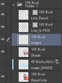 ทางที่ดีควรเก็บเลเยอร์ร่างภาพ เลเยอร์ตัดเส้น และเลเยอร์เติมสีไว้ในโฟลเดอร์ที่แยกจากกัน