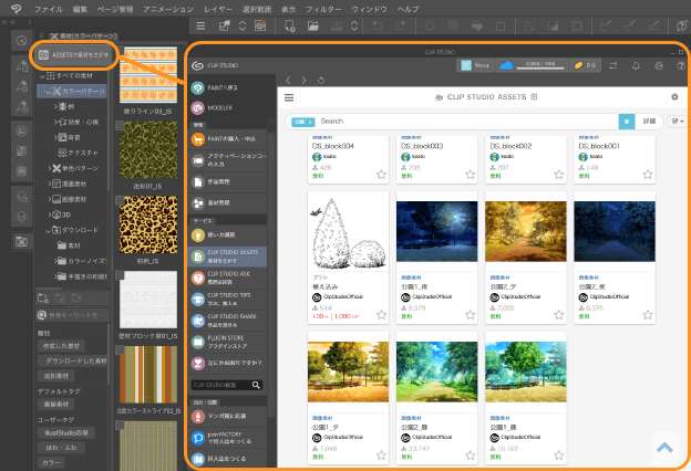 มีวัสดุบางอย่างที่อยู่ใน Clip Studio Paint บนพาเล็ตวัสดุ (Material) อยู่แล้ว