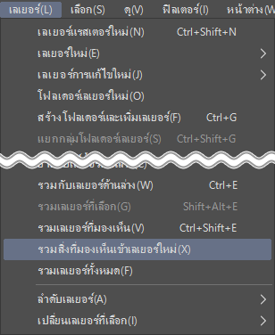 ใช้คำสั่งรวมสิ่งที่มองเห็นเข้าเลเยอร์ใหม่ (Merge Visible to new Layer) เพื่อรวมเลเยอร์ทั้งหมดเป็นเลเยอร์ใหม่ จากนั้นทำสำเนา