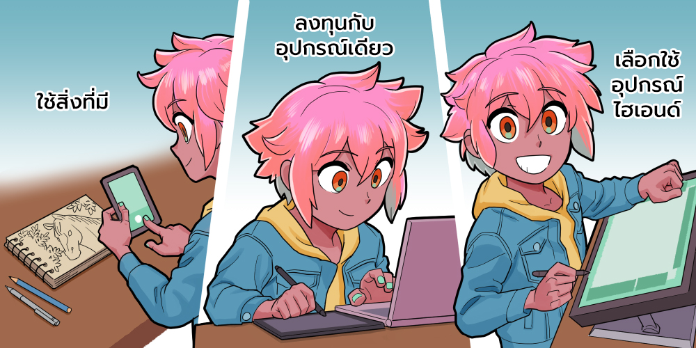 จึงควรเลือกอุปกรณ์ที่ตอบโจทย์ความต้องการด้านการวาดรูป ไปจนถึงระดับความจริงจังในการวาดด้วย