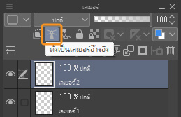 เมื่อผมยืนยันเรียบร้อยว่าเปิดใช้งานแล้ว ผมจะเลือกเลเยอร์ตัดเส้นจากพาเล็ตเลเยอร์ เมื่อเลือกแล้ว ผมจะคลิกที่ไอคอนรูปประภาคารที่ส่วนบนของพาเล็ตเลเยอร์ นี่เป็นไอคอน “ตั้งเป็นเลเยอร์อ้างอิง (Set as reference layer)” เมื่อผมคลิกไอคอนนี้ เลเยอร์ตัดเส้นที่เลือกไว้จะกลายเป็นเลเยอร์อ้างอิง ซึ่งเลเยอร์สีจะใช้อ้างอิงในขณะที่ผมลงสี