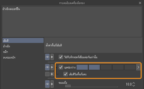 นอกจากนี้ การคลิกไอคอนประแจเล็กๆ ที่มุมขวาล่างของพาเล็ตคุณสมบัติของเครื่องมือจะเป็นการเปิดพาเล็ตรายละเอียดเครื่องมือรอง ในหน้าต่างนี้ เราจะเห็นตัวเลือก “ไม่เกินเส้นเลเยอร์อ้างอิง” แบบเดียวกันได้ในหัวข้อ “ลดการตัดตก (Anti-overflow)” ซึ่งอยู่ที่ด้านล่างของรายการทางซ้ายมือ