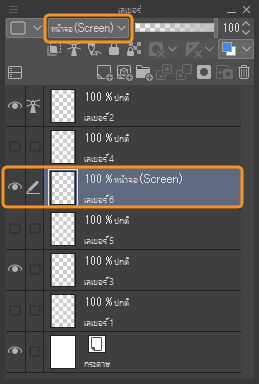 ผมสร้างเลเยอร์สกรีน (Screen) แล้วจะระบายไฮไลท์ด้วยแปรงที่แข็งขึ้นและมีความหนาแน่นต่ำ ในการระบายสีแสงสะท้อนย้อนกลับ หรือการระบายไฮไลท์ในบริเวณที่แสงแดดจะตกกระทบ ผมจะปรับขนาดของแปรงเพื่อสร้างเส้นที่แข็งและคมชัดขึ้น