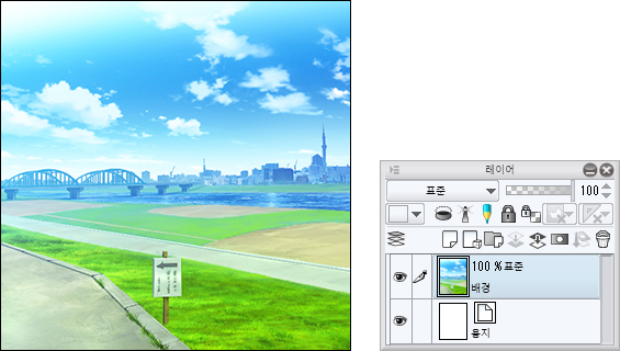 여기에서는 다음 이미지를 사용하여 간단한 합성 모드 활용 예를 소개합니다. CLIP STUDIO PAINT 화면을 사용하고 있습니다만 합성 모드에 대응하는 그래픽 소프트웨어가 있다면 거의 같은 조작으로 사용할 수 있습니다.