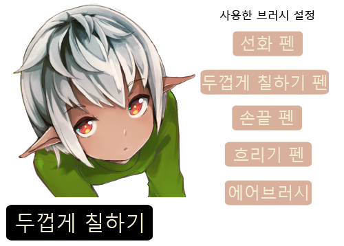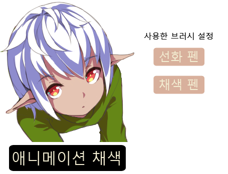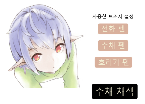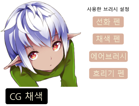 위의 CG 채색은 ‘선화 펜’ ‘채색 펜’ ‘에어브러시’ ‘흐리기 펜’을 이용하여 작성했습니다.