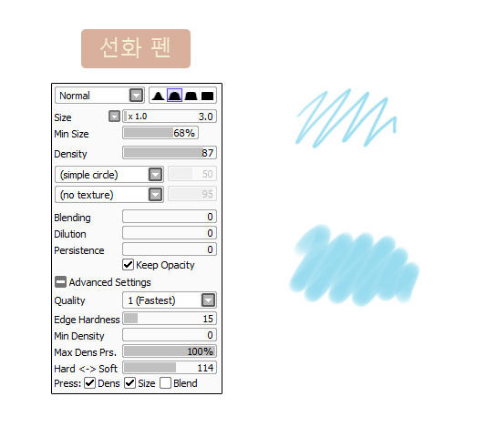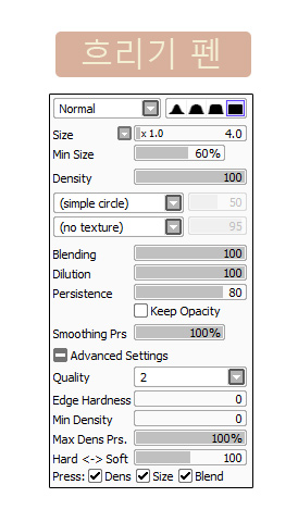그러므로 각 펜 설정을 바탕으로 설정을 바꿔가며 자신에게 맞는 설정을 찾아 보십시오!