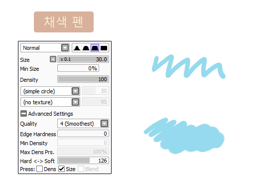 이제부터는 각종 채색과 그에 관한 펜 설정을 설명합니다.