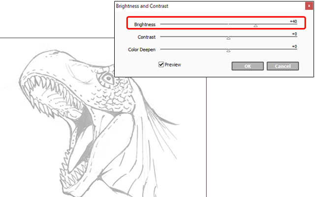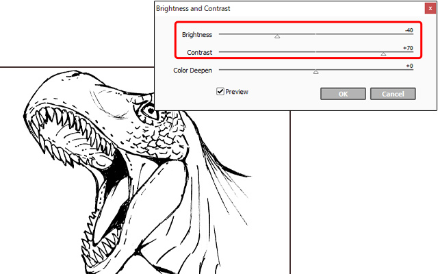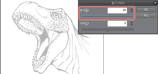 이번에는 선이 진해지도록 [Contrast] 슬라이더를 조정하고 [Brightness] 슬라이더 값을 낮춰 선이 흐려지지 않게 합니다.