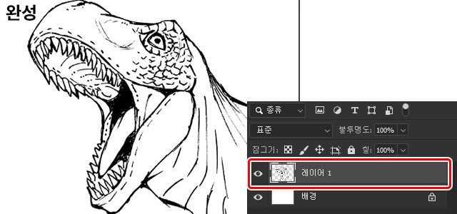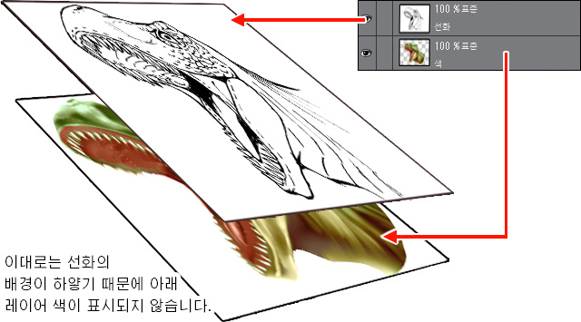 완성된 선화는 선화 레이어 아래에 채색하는 레이어와 겹쳐지기 때문에 선을 지우지 않고 채색할 수 있습니다.