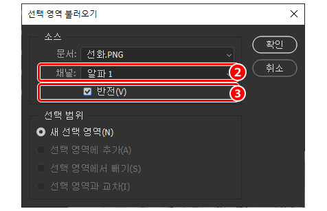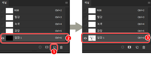 (2) [채널]에서 앞서 작성한 알파 채널을 선택합니다.