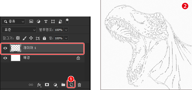 (1) [레이어] 패널의 [새 레이어 작성]을 클릭하고 신규 레이어를 작성합니다.