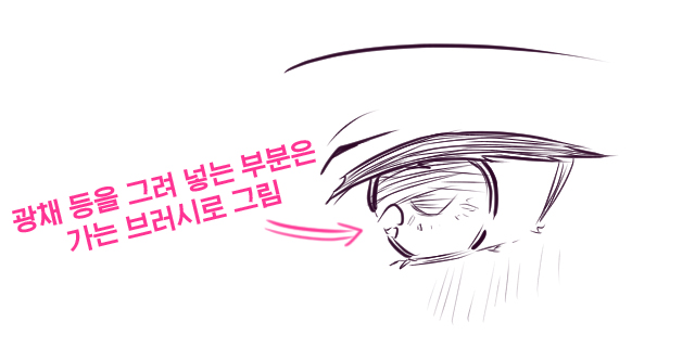 눈동자 속, 손톱, 주름 등은 주선보다도 가는 브러시로 그려 넣습니다.