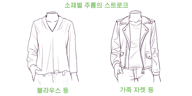 ▽ 옷 주름은 소재에 따라 굵기를 바꾼다