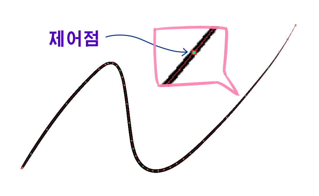 CLIP STUDIO PAINT의 벡터 레이어는 그린 선상에서 제어점이라는 점이 작성되어 벡터 화상을 형성합니다.