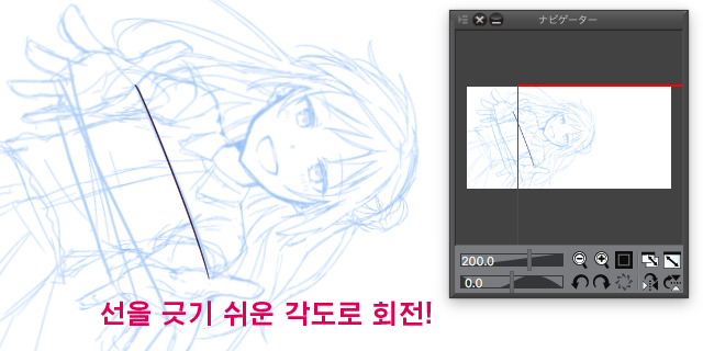 좀 선을 긋기 어렵다 싶을 때는 망설이지 말고 캔버스를 회전하여 그리기 쉬운 각도로 해 봅시다.