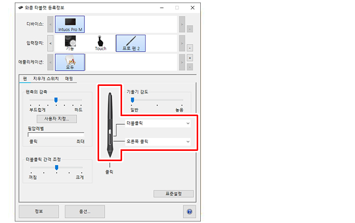※ 드라이버 설정은 펜 태블릿의 종류와 드라이버 버전에 따라 다릅니다.