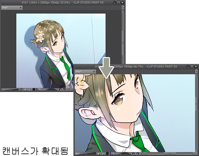 단축 키를 사용하여 캔버스의 일러스트를 확대 표시합니다.